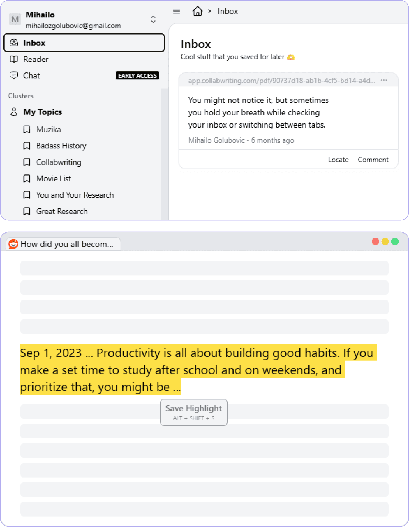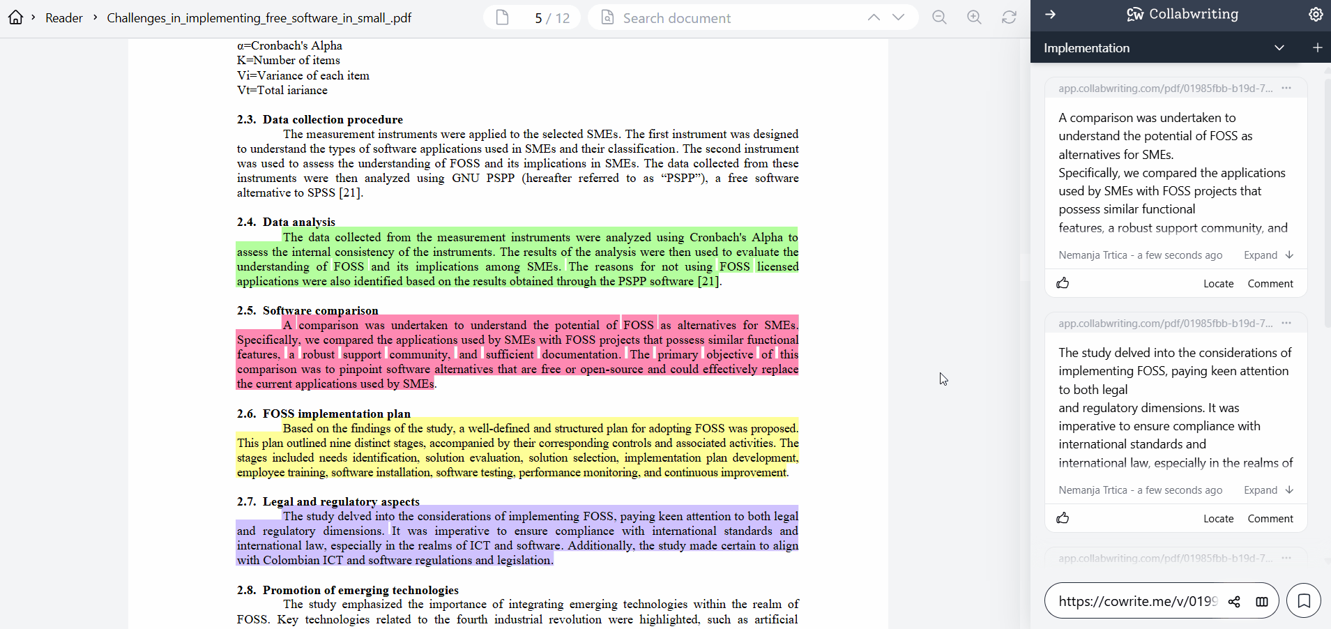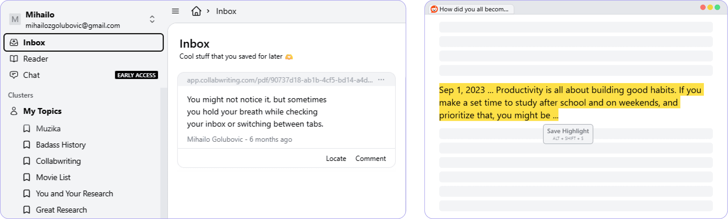 A custom PDF reading + highlighting tool built directly inside Collabwriting, both on desktop and mobile.