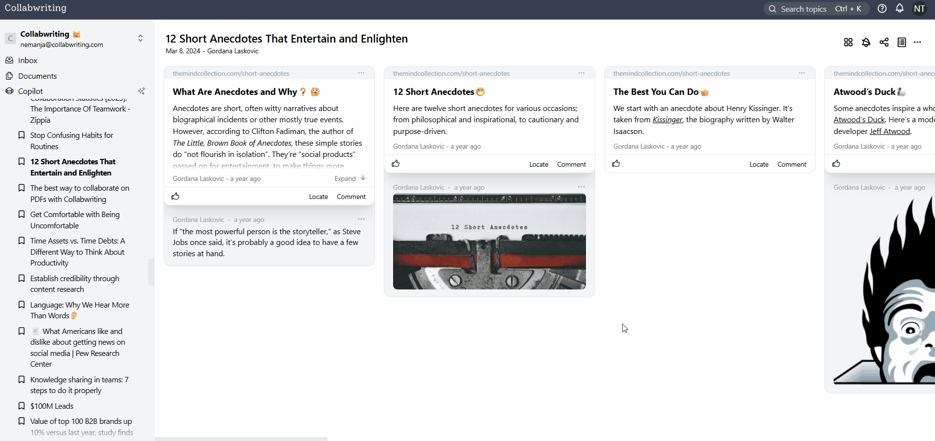 Collabwriting is a knowledge management tool helping teams capture, structure, and rediscover insights.