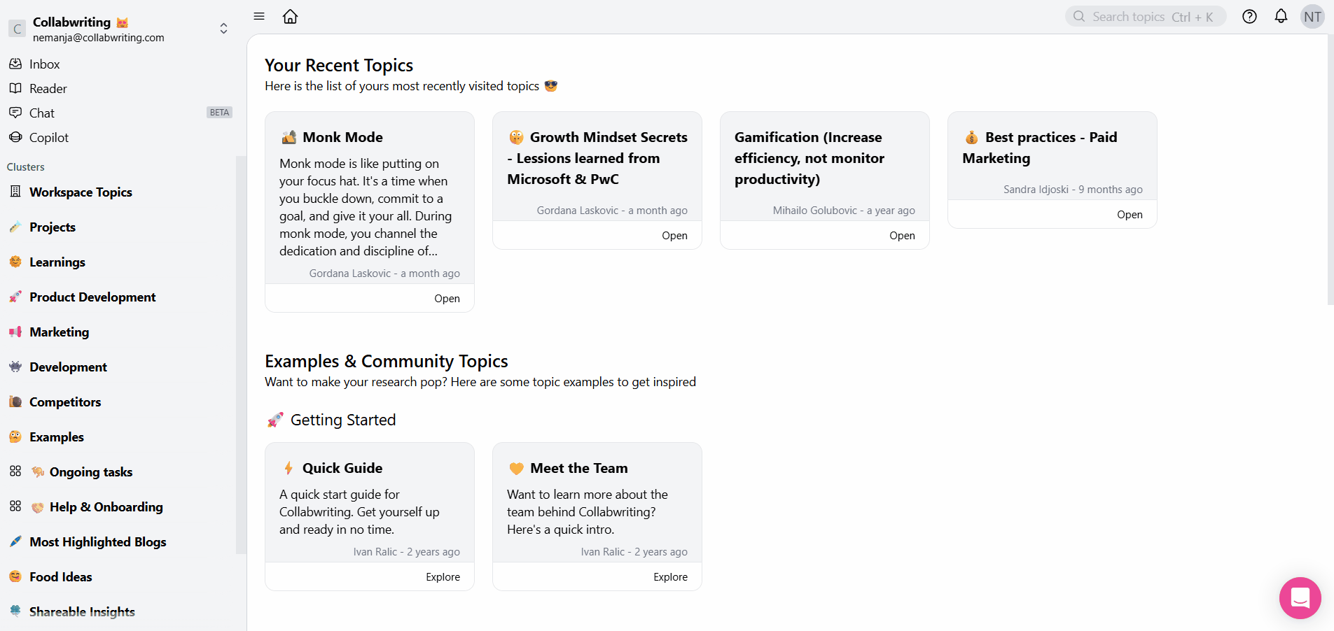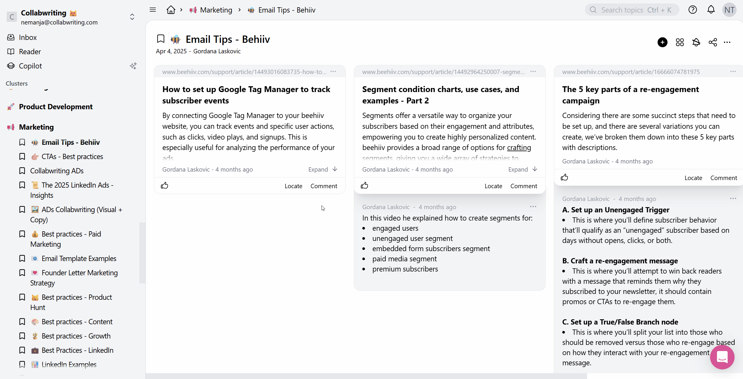 Collabwriting was growing, but users weren’t activating or returning. The issue wasn’t a lack of features. It was fragmentation: people saved insights, but couldn’t organize, use, or retrieve them efficiently.