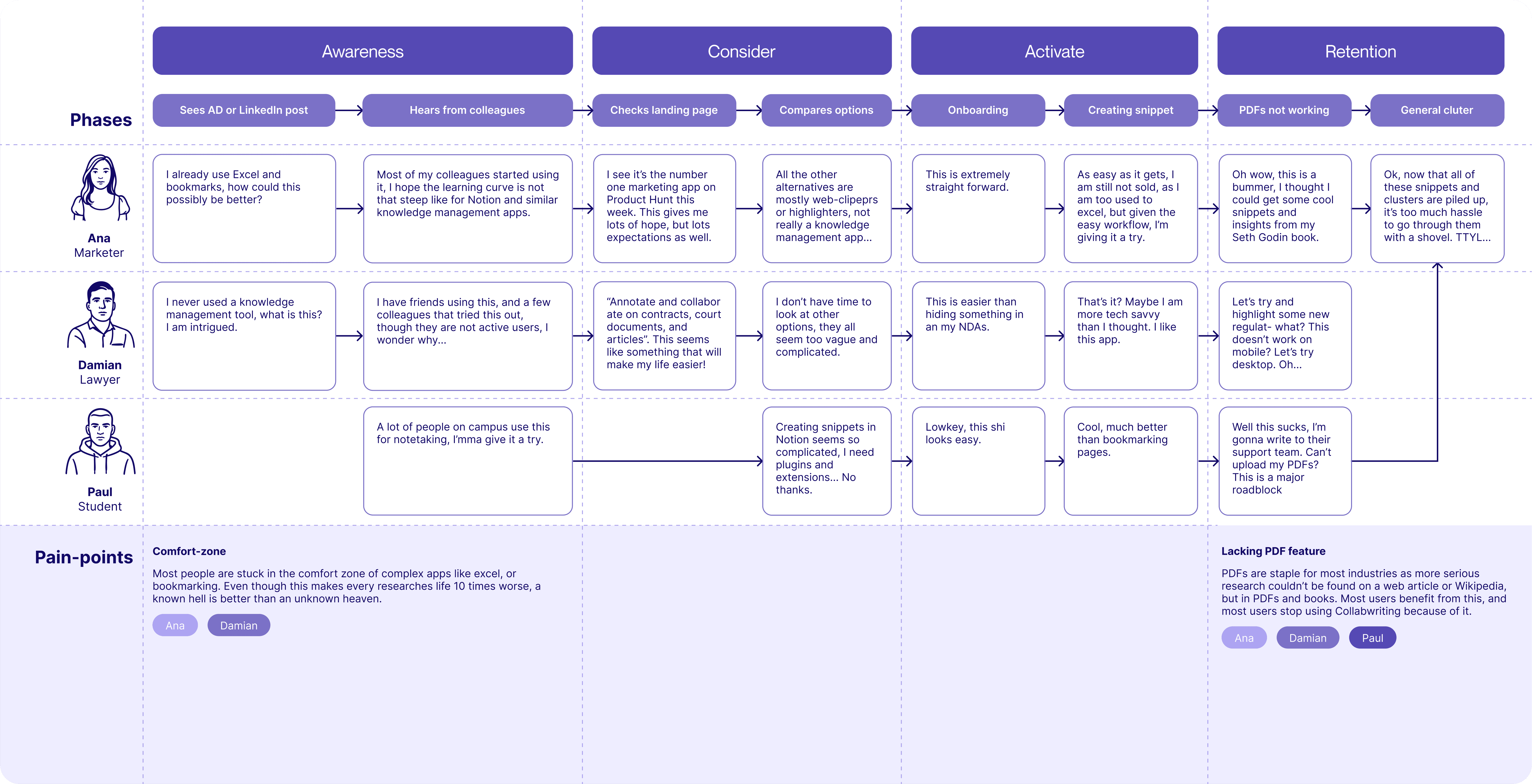The CJM helped me map out the exact points where customers lost retention. Which helped me know exactly which features I should prioritize.