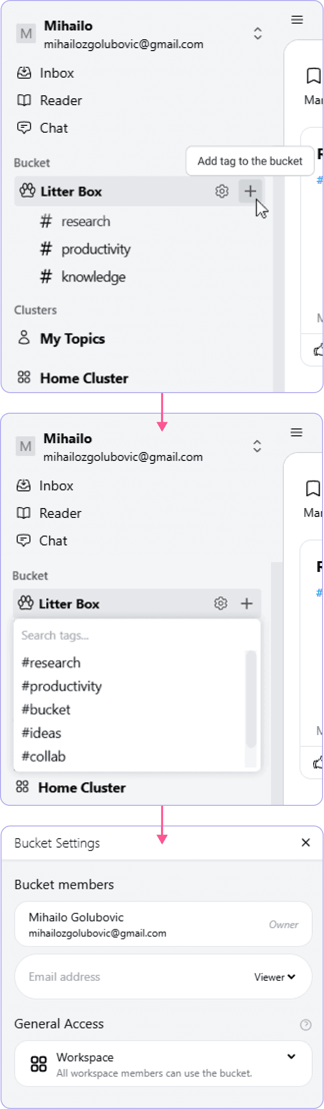 The feeling when you hear a song that is too good, but you still didn't find the right playlist on YouTube for it, so you save it for later? The Inbox is just that, but for research on the go.